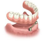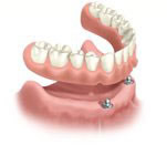 Dit is een uitneembaar, volledige kunstgebit, dat vastklikt aan een metalen staafje dat twee of meer implantaten met elkaar verbindt.